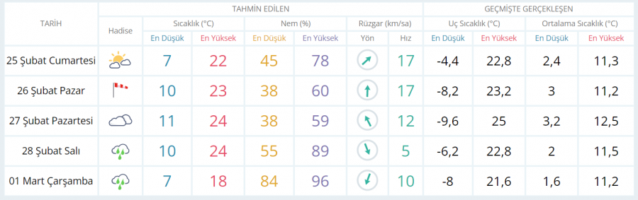 5 GÜNLÜK TAHMİN