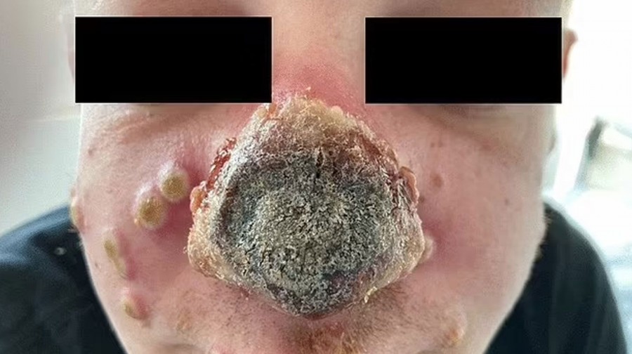 Almanya'da 40 yaşındaki adam, burnunda güneş yanığı olduğu düşünülen kırmızı bir noktayı göstermek için doktora gitti. Ama üç gün içinde burnundaki deri ölmeye ve siyaha dönmeye başladı. Dayanılmaz bir ağrı yaşamaya başlayan adamın burnu çürümeye başladı.