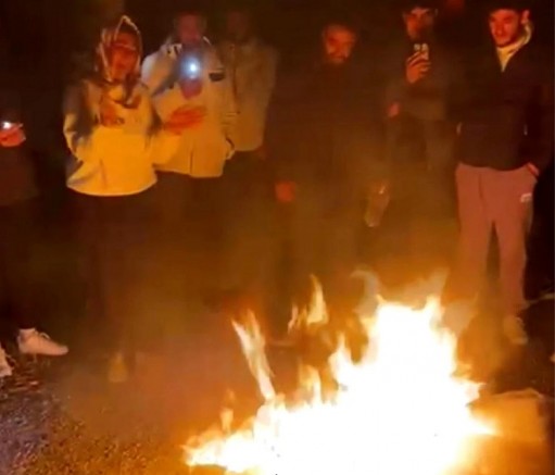 Gelinliğe benzin döküp, ateşe veren anne Hatice Kurt gelinlik yanarken, alkışlarla ve ağıtlar yakılışını izledi.