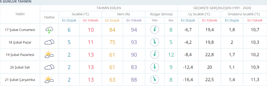 5 GÜNLÜK HAVA TAHMİNİ