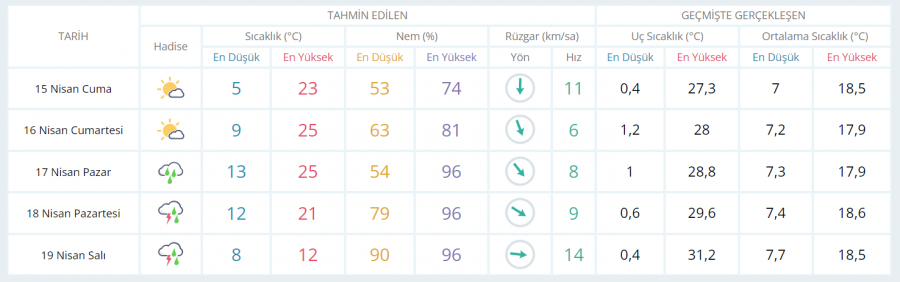 BURSA İÇİN 5 GÜNLÜK TAHMİN