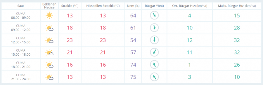 Meteoroloji Genel Müdürlüğü tarafından yapılan son değerlendirmelere göre, Bugün ülkemizin kuzeydoğu kesimlerinin parçalı yer yer çok bulutlu, Orta ve Doğu Karadeniz kıyıları, Artvin ve Tokat çevreleri ile Sivas'ın kuzey kesimlerinin yağışlı, diğer yerlerin az bulutlu geçeceği tahmin ediliyor. Karadeniz'in iç ve yüksek kesimleri ile Doğu Anadolu'da yüksek kar örtüsüne sahip eğimli bölgelerde çığ riski bulunmaktadır. İç ve doğu kesimlerde bu sabah ve gece saatlerinde buzlanma ve don ile birlikte yer yer sis ve pus olayı bekleniyor.