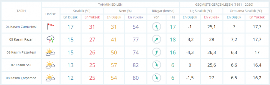 Parçalı bulutlu geçeceği tahmin ediliyor. Gece ve sabah saatlerinde iç kesimlerde yer yer pus ve sis bekleniyor.