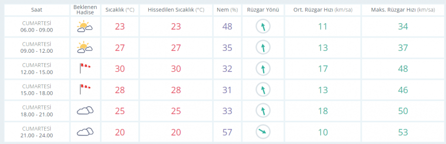 Parçalı bulutlu geçeceği tahmin ediliyor. Rüzgârın, Kıyı Ege'de güneyli yönlerden kuvvetli ve fırtına (50-70 km/saat) şeklinde esmesi bekleniyor. Gece ve sabah saatlerinde iç kesimlerde yer yer pus ve sis bekleniyor.