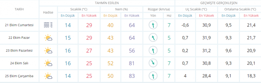 5 GÜNLÜK HAVA DURUMU