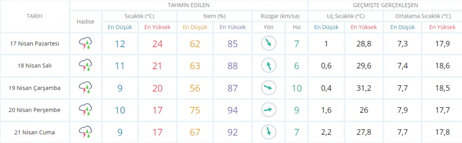 Parçalı ve çok bulutlu, öğle saatlerinden sonra ve akşam saatlerinde sağanak ve yer yer gök gürültülü sağanak yağışlı