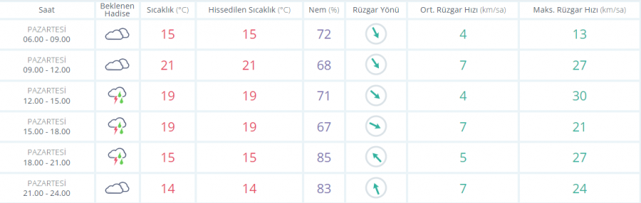 Parçalı ve çok bulutlu, öğle saatlerinden sonra ve akşam ilk saatlerde yerel sağanak ve yer yer gök gürültülü sağanak yağışlı