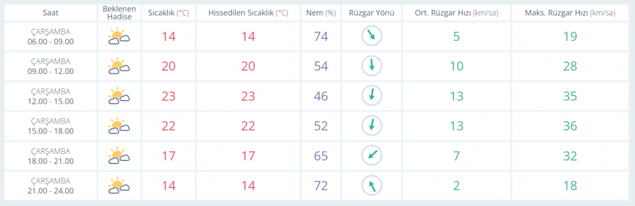 Parçalı bulutlu iç kesimleri yerel olmak üzere sağanak ve gök gürültülü sağanak yağışlı geçeceği tahmin ediliyor. Yağışların doğu kesimlerinde yerel olmak üzere kuvvetli olması bekleniyor.