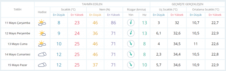 BURSA İÇİN 5 GÜNLÜK TAHMİN