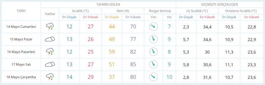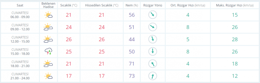 Az bulutlu ve açık, zamanla parçalı bulutlu öğle saatlerinden sonra iç kesimleri sağanak ve gök gürültülü sağanak yağışlı geçeceği tahmin ediliyor.