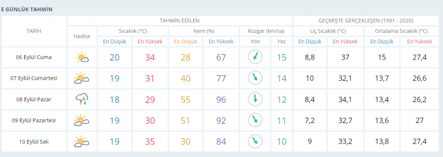 Meteoroloji Genel Müdürlüğü (MGM) tarafından Bursa için yapılan son değerlendirmelere göre, 6 Eylül 2024 Cuma günü ve 5 günlük hava durumu detayları şöyle;