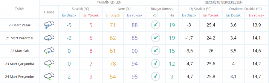 BURSA İÇİN 5 GÜNLÜK TAHMİN