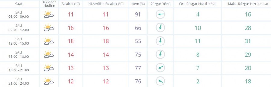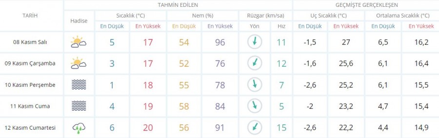 Parçalı ve çok bulutlu, batı kesimlerinin yağmur ve sağanak, Bitlis, Muş, Şırnak, Erzincan, Bingöl, Tunceli ve Erzurum çevrelerinin yükseklerinin karla karışık yağmur ve kar yağışlı geçeceği tahmin ediliyor. Yağışların, Tunceli, Erzurum ve Bingöl çevrelerinde kuvvetli olması bekleniyor.