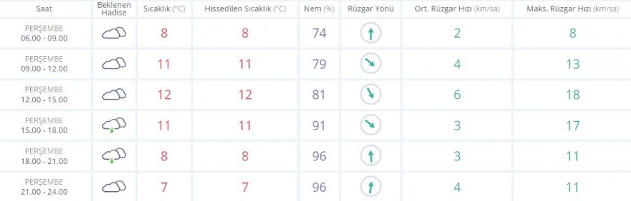 Çok bulutlu, kuvvetli ve yer yer şiddetli olmak üzere aralıklı sağanak ve gök gürültülü sağanak yağışlı geçeceği tahmin ediliyor. Yağışların, iç ve yüksek kerimlerinde (1200 m üzeri) kuvvetli karla karışık yağmur ve yer yer yoğun kar şeklinde olması bekleniyor.