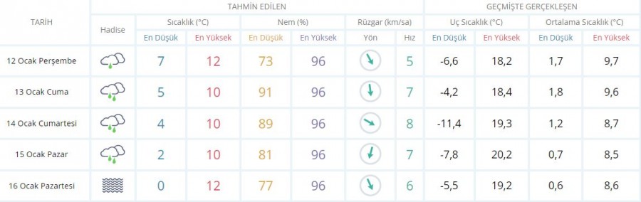 5 GÜNLÜK HAVA TAHMİNİ