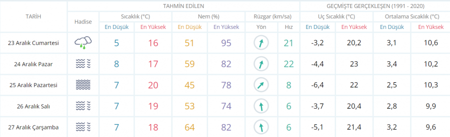 5 GÜNLÜK TAHMİN