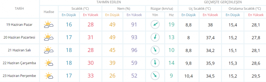 BURSA İÇİN 5 GÜNLÜK TAHMİN
