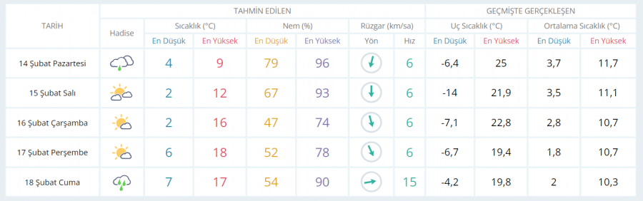 BURSA İÇİN 5 GÜNLÜK HAVA TAHMİNİ