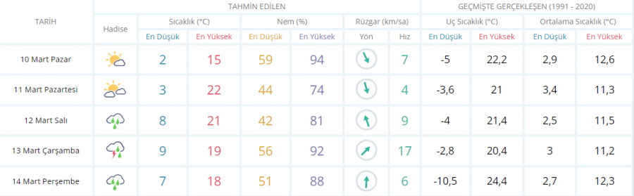 5 GÜNLÜK TAHMİN
