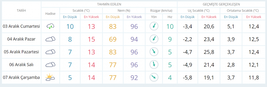 5 GÜNLÜK HAVA TAHMİNİ