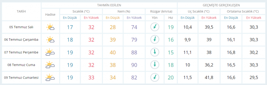 BURSA İÇİN 5 GÜNLÜK TAHMİN