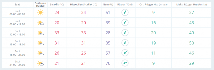 Az bulutlu ve açık geçeceği tahmin ediliyor. Rüzgârın; iç kesimlerinde kuzeyli yönlerden kuvvetli (40-70 km/sa) esmesi bekleniyor.