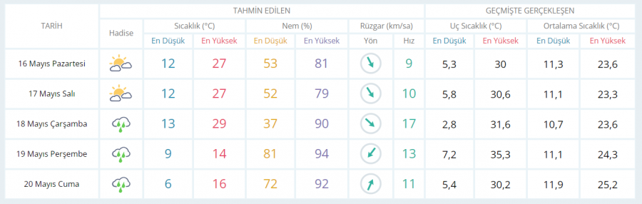BURSA İÇİN 5 GÜNLÜK TAHMİN