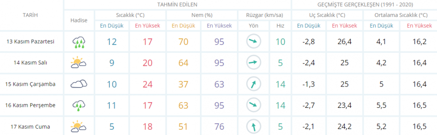 5 GÜNLÜK HAVA DURUMU