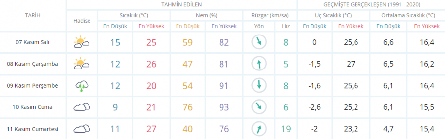 Parçalı ve az bulutlu, doğusunun yer yer çok bulutlu geçeceği tahmin ediliyor. Gece ve sabah saatlerinde iç kesimlerde pus ve yer yer sis bekleniyor.