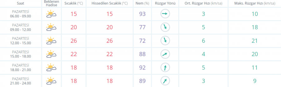 Parçalı bulutlu geçeceği tahmin ediliyor. Bu sabah ve gece saatlerinde yer yer pus ve sis olayı bekleniyor.