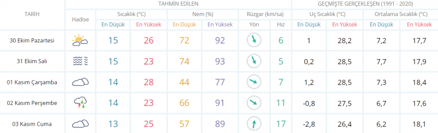 5 GÜNLÜK TAHMİN
