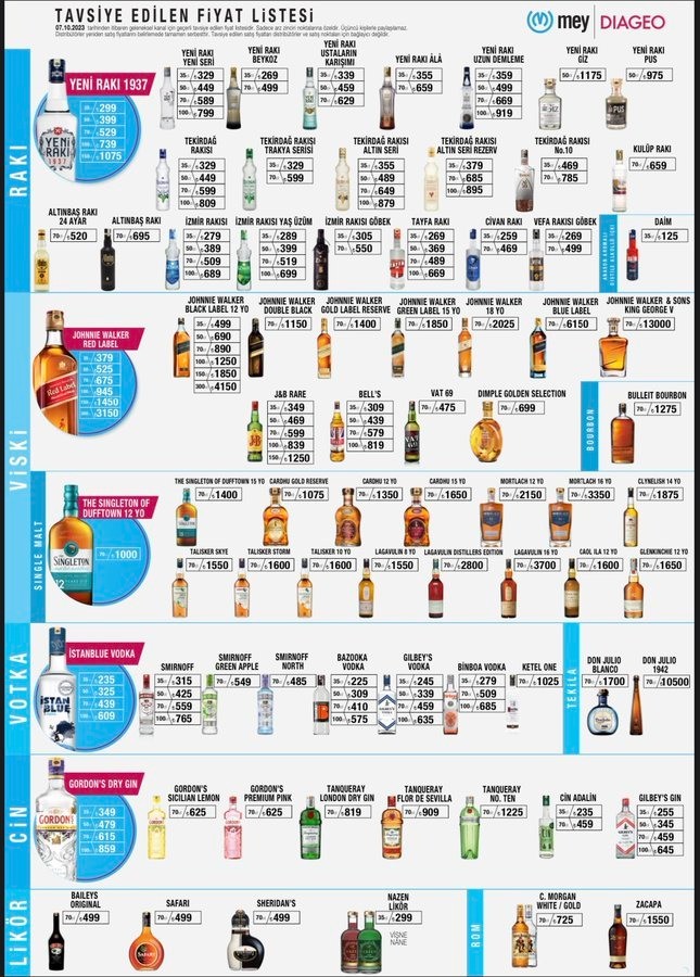 Tekel Bayileri Yardımlaşma Derneği Başkanı Dündar, Mey/Diageo grubu ürünlerine zam yapıldığını duyurdu.