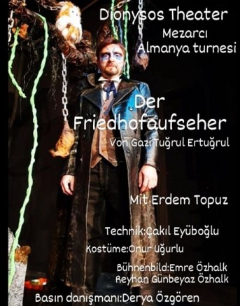 Başarılı Oyuncu Erdem Topuz'un hem oynayıp hemde yönettiği ve 25 yıl önce Gazi Tuğrul Ertuğrul tarafından kaleme alınan ''Mezarcı'' Dionysos Tiyatro yapımı tek perdelik oyunu ile Avrupa Turnesine çıkmaya hazırlanıyor. Almanya Turnesi kapsamında 8-9-10 Aralık 2023 Köln Theater Tiefrot'da tiyatroseverler ile buluşacak Oyuncu Erdem Topuz, Almanya turnesi öncesinde ise 24 Kasım 2023 Cuma günü saat 20:30'da Mecidiyeköy Cevahir Besa Sahne'de sevenleriyle buluşacak.