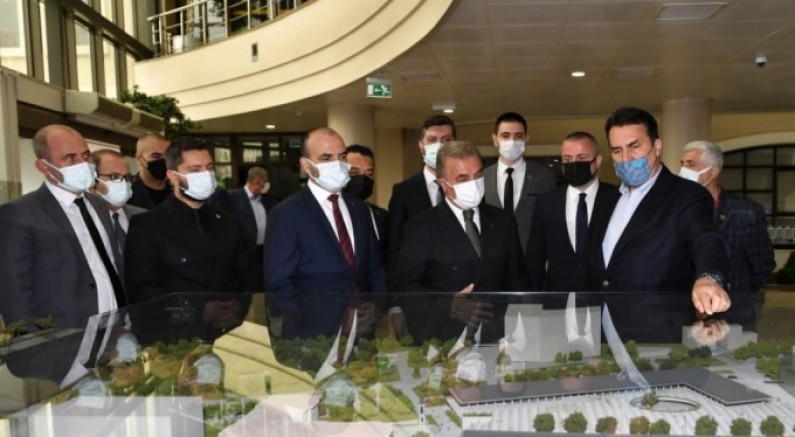 Osmangazi Belediyesi tarafından Bursa'nın merkezinde toplam 40 bin metrekare alan üzerine inşa edilen Osmangazi Meydanı'nda çalışmalar yoğun bir şekilde devam ediyor. 2000 araç kapasiteli otoparkı, nikâh salonu, millet kıraathanesi, sosyal ve kültürel etkinlik alanları ve 20 bin kişilik meydanı ile Bursa'nın yeni çekim merkezi oluyor. Bursa'nın yeni merkezindeki inşaat çalışmalarını şehir dinamikleri yakından inceleme fırsatı bulurken, meydanın son ziyaretçisi MHP Genel Sekreteri ve Bursa Milletvekili İsmet Büyükataman oldu. Büyükataman'ın yanı sıra MHP Bursa İl Başkanı Cihangir Kalkancı ve MHP Osmangazi İlçe Başkanı Seyfi Seyfioğlu'nu meydan ziyareti öncesi makamında ağırlayan Osmangazi Belediye Başkanı Mustafa Dündar, yapımı tamamlanan ve devam eden projeler hakkında kendisine bilgi verdi.