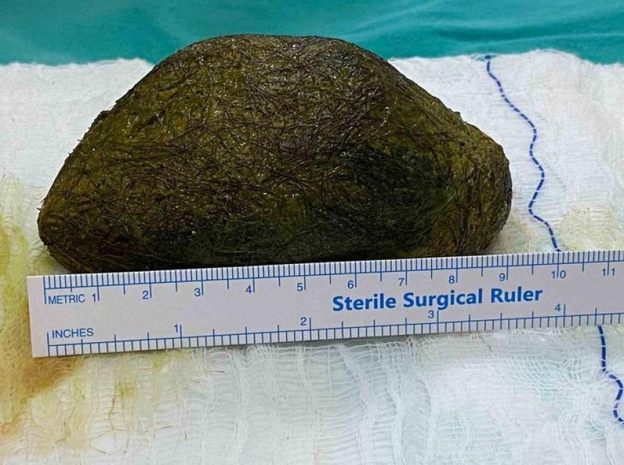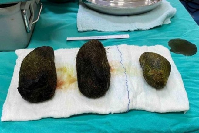 Doktor "bu sırada tetkiklerinde bizim de dahil olduğumuz tetkiklerinde mide ve ince bağırsaklarında tıkanıklığa yol açan midesini tamamına yakını dolduran ince bağırsakta tıkanmaya yol açan büyür kıl yumakları bizim Trikobezoar dediğimiz sindirilmemiş gıdalardan ya da kıl yumaklarından ya da bazı ilaçlardan oluşan bezoarın olduğunu tespit ettik. Hastamızın genel durumunun toparlanmasını biraz daha bekledik gerekli destek ve tedaviyle hastamız genel durumu artık ameliyata uygun hale geldikten sonra dün ameliyatımızı gerçekleştirdik." ifadelerini kullandı.