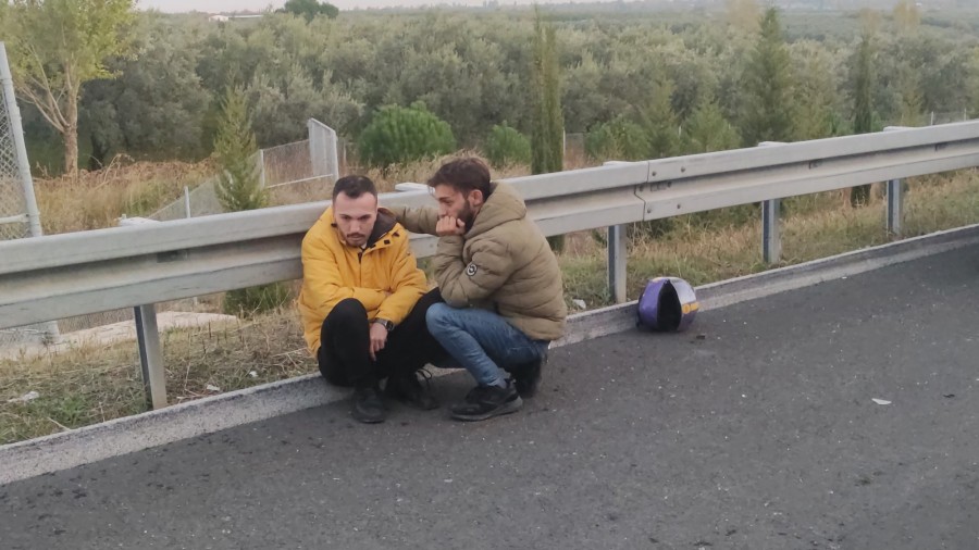 Bu esnada aynı yönde gitmekte olan İsmail Uçar (18) idaresindeki motosiklet, emniyet şeridinde duran otomobile arkadan çarptı. Çarpmanın şiddeti ile sürücü İsmail Uçar ile arkasında yolcu olarak bulunan Ahmet Göktuğ Kurt (20) yola savruldu. Kazada motosiklet sürücüsü İsmail Uçar ile yolcu Ahmet Göktuğ Kurt yaralandı.