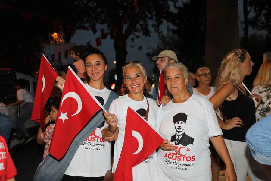 30 Ağustos Zafer Bayramı kutlamaları İskele Meydanı'nda Gazi Mustafa Kemal Atatürk'ün Anıtı'na çelenk sunumu ve İstiklal Marşı'nın okunmasıyla başladı. Ardından Mudanya Kaymakamlığı'nda tebriklerin kabulü töreni gerçekleştirildi. Kutlamalar kapsamında Büyük Zaferin 100'üncü yılında Güzelyalı'da araç kortej geçişi yapıldı. Mudanya Bandosu eşliğinde Mudanya Belediye Başkanı Hayri Türkyılmaz, meclis üyeleri ve Mudanyalılar, İskele Meydanı'ndan Mütareke Meydanı'na yürüyüş gerçekleştirdi. Büyük Zaferin 100'üncü yılında sanatçı Leman Sam'ın sahne almasıyla coşku doruğa ulaştı. Mütareke Meydanı'nı dolduran binlerce kişi şarkılara eşlik etti. Konser sonunda Mudanya Belediye Başkanı Hayri Türkyılmaz ve eşi Gülbahar Türkyılmaz, Leman Sam ile birlikte İzmir Marşı'nı söyledi.