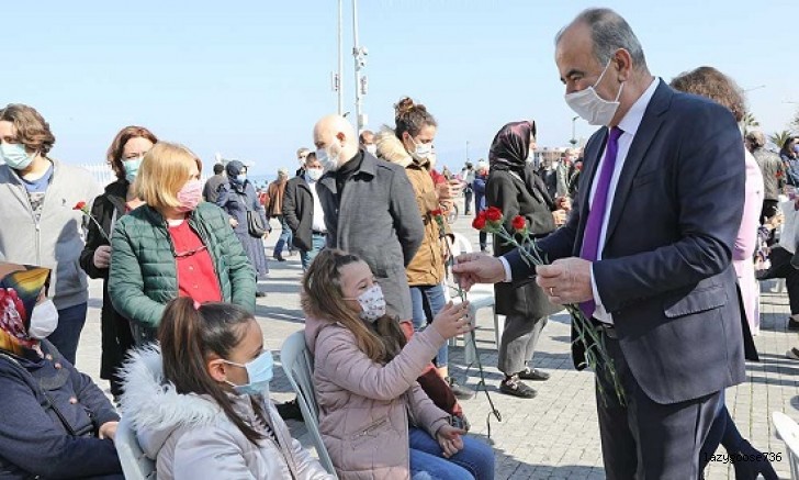 Cumhuriyet tohumlarının ekilmesinde, gerek cephede, gerekse cephe gerisinde tüm gücü ile istikbali için direnen Türk kadınının rolüne dikkat çeken Mudanya Belediye Başkanı Hayri Türkyılmaz, “Bizim onlara borcumuz. Emanetlerini ilelebet yaşatmak için canımız pahasına mücadele edeceğiz” dedi. “Özgür Dünya Kadınlarla Gelecek” diyen Türkyılmaz, “Ülkemizde hak hukuk adalet olsun. Barış, kardeşlik, demokrasi olsun. Kadınlara şiddet, cinayet değil, ufacık bir söz dahi edilmesin. Tüm güzelliklerin yaşandığı ülkemizde kadınlara yönelik şiddetinson bulduğu mutlu bir gelecek olsun” diye konuştu. Etkinlik sonunda Türkyılmaz, kadınlara maske ve karanfil dağıtarak 8 Mart Dünya Emekçi Kadınlar Gününü kutladı.