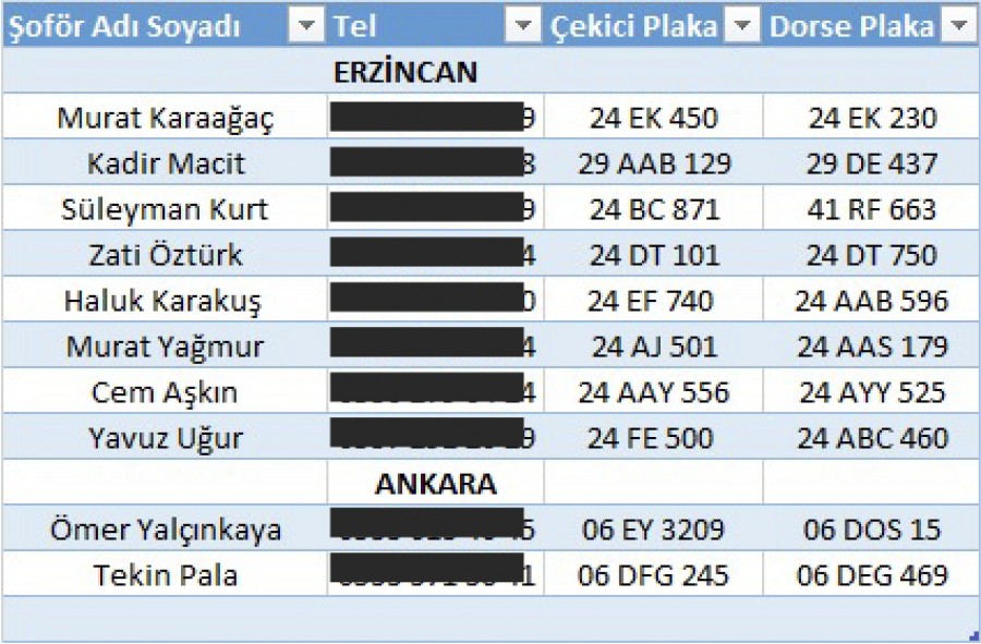 İrsaliyeleri elimizde olan, çadırları deprem bölgesine ulaştıran tırlar: