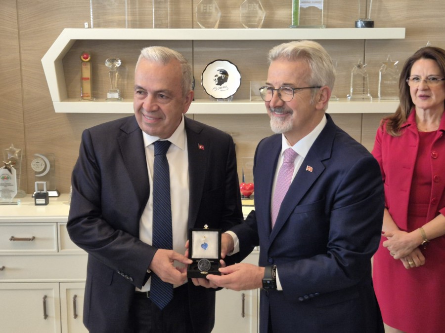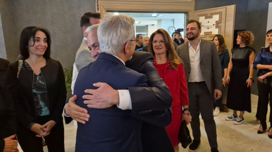 Nilüfer Belediye Başkanı Şadi Özdemir ve önceki dönem Nilüfer Belediye Başkanı Turgay Erdem, birbirlerinin eşlerine çiçek takdim ettiler ve aynı hediyeyi birbirlerine hediye ettiler.