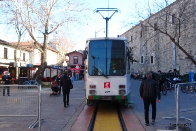 Tarihî Çarşı ve Hanlar Bölgesi'nin ortasından geçen Cumhuriyet Caddesi'ni araç trafiğine kapalı olması ve tramvayın hem yolculuk hem de nostaljik açıdan ilgi görüyor.