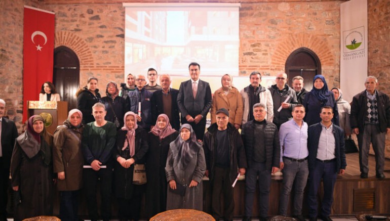 Ördekli Kültür Merkezi’nde 15. Noter Başkâtibi huzurunda çekilen kuraların ardından 18 hak sahibi tapularını Osmangazi Belediye Başkanı Mustafa Dündar’ın elinden aldı.