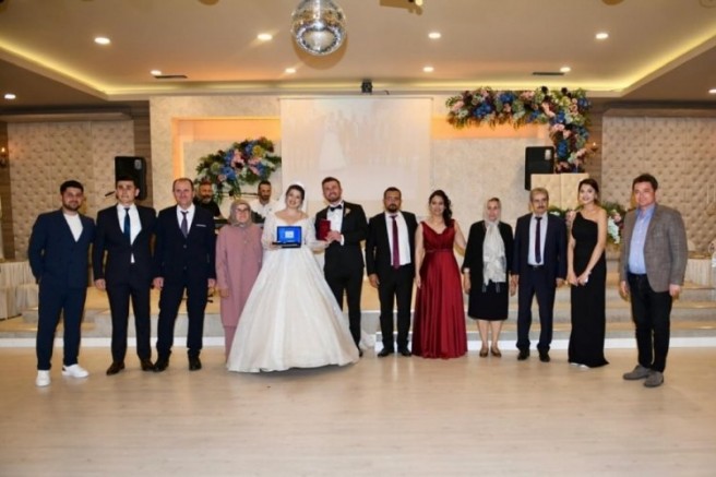 Yeni evli çifte esprili bir şekilde tavsiyelerde bulunan Başkan Aydın, “Damat bey, mutluluğun sırrı çok basit. Her zaman son sözü sen söyleyeceksin ve peki hanım diyeceksin. Bu şekilde bir ömür boyu mutlu olacaksın. Gelin hanım siz de nikah kıyılırken yaptığınız gibi damadın ayağına basacaksın, ancak damarına basmayacaksın. Allah çıktığınız bu yolda huzurla, mutlulukla ve birlik beraberlik içerisinde bir ömür nasip etsin. İnşallah, bir ömür boyu güzel bir hayat sizlerin olur” dedi. Başkan Aydın, nikah töreninin ardından evlilik cüzdanını gelin hanıma teslim etti.