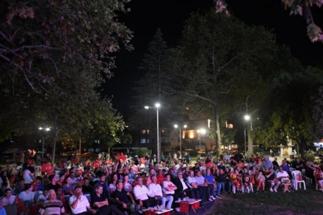 Maçı dev ekranda heyecanlı bir şekilde takip eden vatandaşlar kendilerine bu imkanı sağlayan Osmangazi Belediye Başkanı Erkan Aydın'a teşekkür etti.