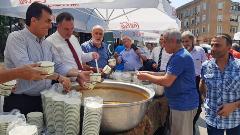 Başkan Dündar, sünnet şöleninin ardından Filibe Muradiye Camii’nde kılınan cuma namazının ardından aşure ikramında bulundu. Filibe Bölge Müftülüğü ve Muradiye Camii Başkanlığı işbirliğinde düzenlenen programda Başkan Dündar, Filibe Başkonsolosu Korhan Küngerü ile birlikte kazanların başına geçerek aşure dağıttı.
