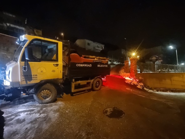 Osmangazi İlçesi sınırlarında kalan ve yoğun kar yağışı alan Süleymaniye, Kirazlı, Tuzaklı mahallelerine yönelik bağlantı yollarında trafiğin olağan akışında seyretmesi için sahada olan ekipler, bu bölgelerde yolları genişleterek sürücülerin olumsuz etkilenmemesi için buzlanmaya karşı tuzlama çalışmalarını da aralıksız sürdürdü.
