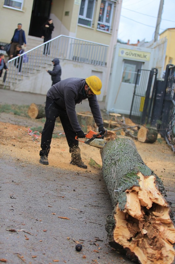 Bursa’da sabah saatleriyle birlikte etkisini artıran lodos ve sağanak yağış, kent genelinde günlük yaşamı olumsuz yönde etkiledi. Saatte yaklaşık 80 kilometre hıza ulaşan rüzgar, özellikle Osmangazi ilçesinde bulunan bazı bölgelerde ağaç devrilmeleri ile dal kırılmalarını beraberinde getirdi. Olumsuz hava koşullarının ardından Osmangazi Belediyesi Park ve Bahçeler Müdürlüğü ekipleri hızla sahaya indi. Lodosun etkili olduğu ilk andan itibaren gelen ihbarları değerlendiren ekipler; Nilüferköy, Dikkaldırım ile Demirtaş Sakarya mahallelerinde hızlı ve koordineli bir çalışma yürüterek olası tehlikelerin önüne geçti. Gerçekleştirilen müdahaleler sayesinde yaya ve araç trafiğinde oluşabilecek aksamalar giderilirken, vatandaşlara güvenli bir ortam tesis edildi.