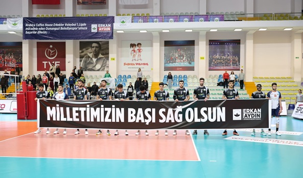 Karşılaşmaya “Milletimizin Başı Sağ Olsun” yazılı pankartla çıkan Osmangazi Belediyespor Erkek Voleybol Takımı, duyarlı davranışıyla taraftarın takdirini topladı.