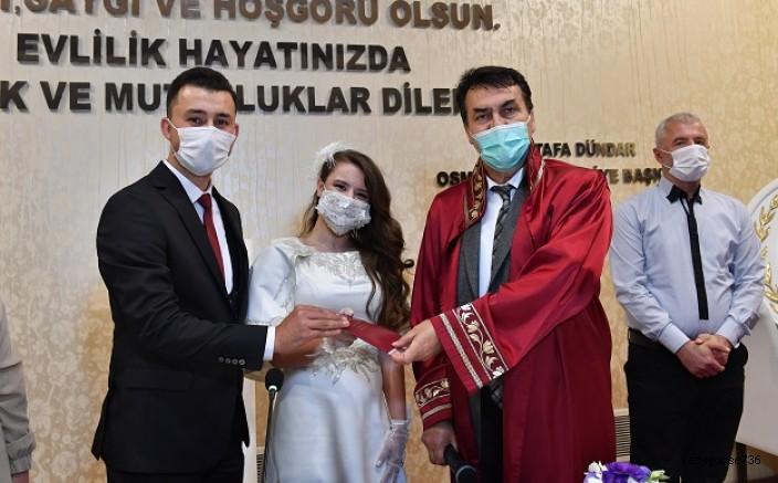 Koronavirüs salgını nedeniyle nikahları temizlik, sosyal mesafe ve maske kurallarına uygun bir şekilde gerçekleştirdiklerini belirten Osmangazi Belediye Başkanı Mustafa Dündar, “Pandemi sürecinde nikahlarımız biraz buruk geçiyor. Fakat, insan sağlığının her şeyden daha önemli olduğunu unutmamamız gerekiyor. Osmangazi Belediyesi olarak Bursa’da en fazla nikâh kıyan belediyeyiz. 2020 yılında 6 bin 52 çiftimizin mutluluğuna ortak olduk. Bu evliliklerin arasında yabancı uyruklu vatandaşlarımız da var. Aile kuran tüm çiftlerimize mutluluklar diliyorum” dedi.