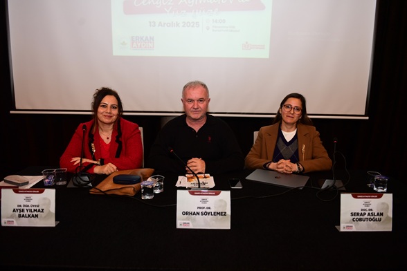 kavramlarını dönüştürerek, sanatta dönüştürücü bir güç olarak kullanarak ütopik etkisini nasıl açığa çıkarttığı üzerinde durduk.” derken, Dr. Ayşe Yılmaz Balkan da, Aytmatov’un çocukluğundan, gençliğinden, doğduğu coğrafyanın özelliklerinden, eğitim ve mesleğinden bahsetti.